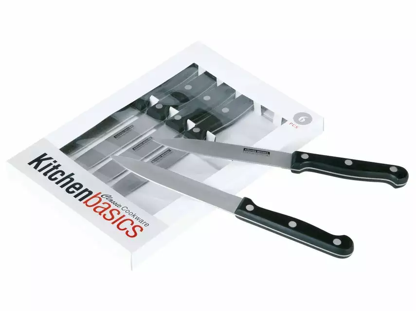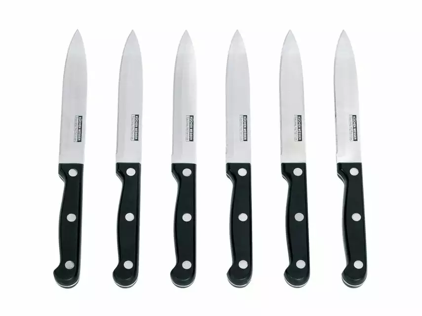 Mit diesem Klassiker unter den Allzweckmessern sind Sie in Ihrer Küche gut bedient. Zum Schneiden von Gemüse, Fleisch, Fisch und vielem mehr sind diese Messer geeignet. Das 6-teilige Set ist aus Edelstahl gefertigt und mit einem Kunststoffgriff für angenehmen Halt ausgestattet.