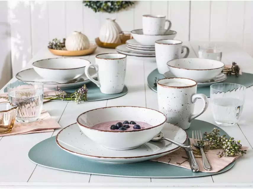 Steinzeug ist wieder sehr gefragt. Sein natürlicher Charme und seine robuste Art wirken echt, geerdet und zu vielen Einrichtungsstilen harmonisch. Besonders edel ist die Version Off-White des Services Nature Look von Arte Viva, das mit feinem Glanz und gesprenkelter Vintage-Optik zusätzlich eine Prise italienischer Lebensart vermittelt. Einzigartig sind die 16 schönen Stücke von vornherein, denn die spritzige Handbemalung macht jedes zum Unikat.