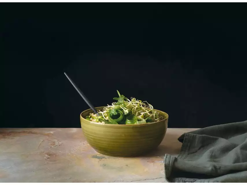 Poké Bowls sind derzeit in aller Munde. Bei der handgefertigten Poké Bowl im Edamame Design wurde die Glasur von Hand aufgetragen. Jedes Exemplar ist daher ein Unikat. Da schmeckt es gleich besonders lecker. Die Schale hat einen Durchmesser von 18 cm und eine Höhe von 7 cm. Insgesamt fasst sie 0,8 Liter. Sie ist spülmaschinenfest und kann auch in der Mikrowelle zum erwärmen benützt werden.