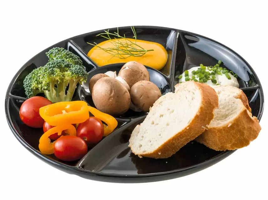 Wer ist nicht auch ein großer Fan von Fondue oder heissem Stein. Das Zubereiten von kleinen Happen direkt auf dem Tisch macht große Freude und fördert das gesellige Beisammensein von Familie und Freunden. So kocht sich jeder seine eigenen Lieblingszutaten und verfeinert sie mit leckeren Saucen, welche perfekt auf dem Teller portioniert werden können. Die Teller sind in sechs Parts aufgeteilt. Geniessen Sie die Atmosphäre, den unwiderstehlichen Duft und die schmackhaften Bissen. Mit diesen Geschirr ist der Genuss komplett.