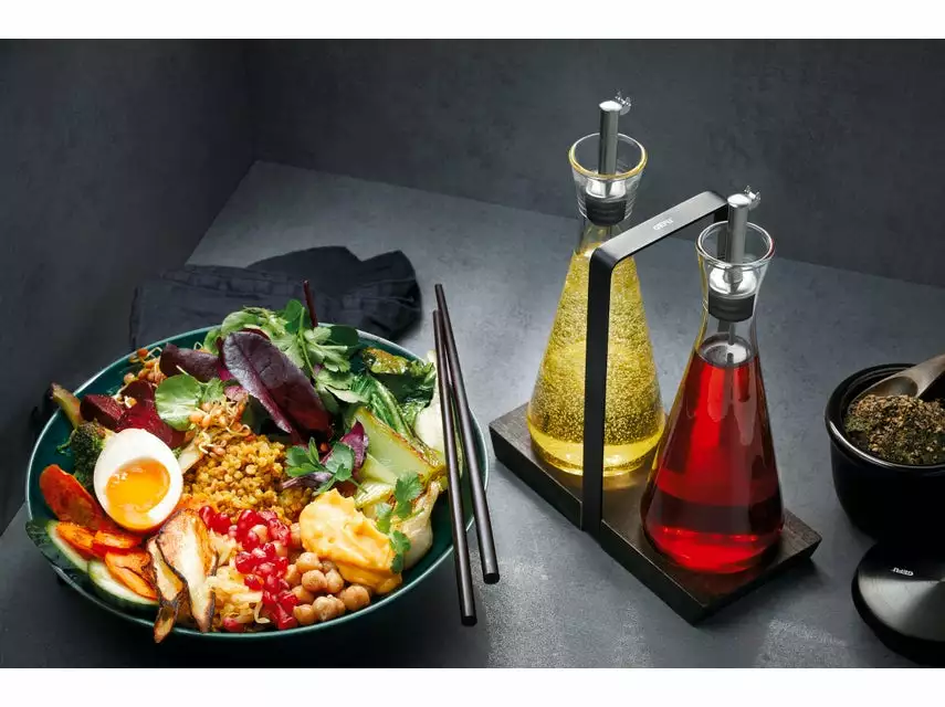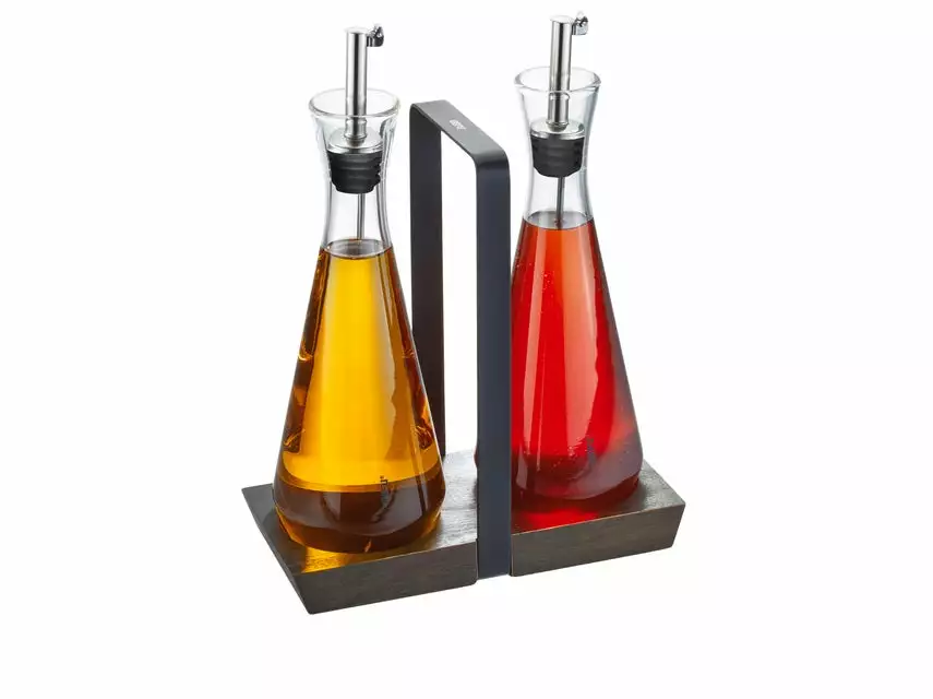 Das exklusive Essig- und Öl-Set ist ein echtes Highlight für das stilvolle Zuhause von heute. Beide Spender sind aus hochwertigem Kristallglas und mit einem tropfsicheren Edelstahlausgießer mit Verschlusskappe ausgestattet. Komplettiert wird das Set durch eine edle Holzmenage mit praktischem Tragegriff. Das ideale Geschenk selbst für verwöhnte Kochkünstler.