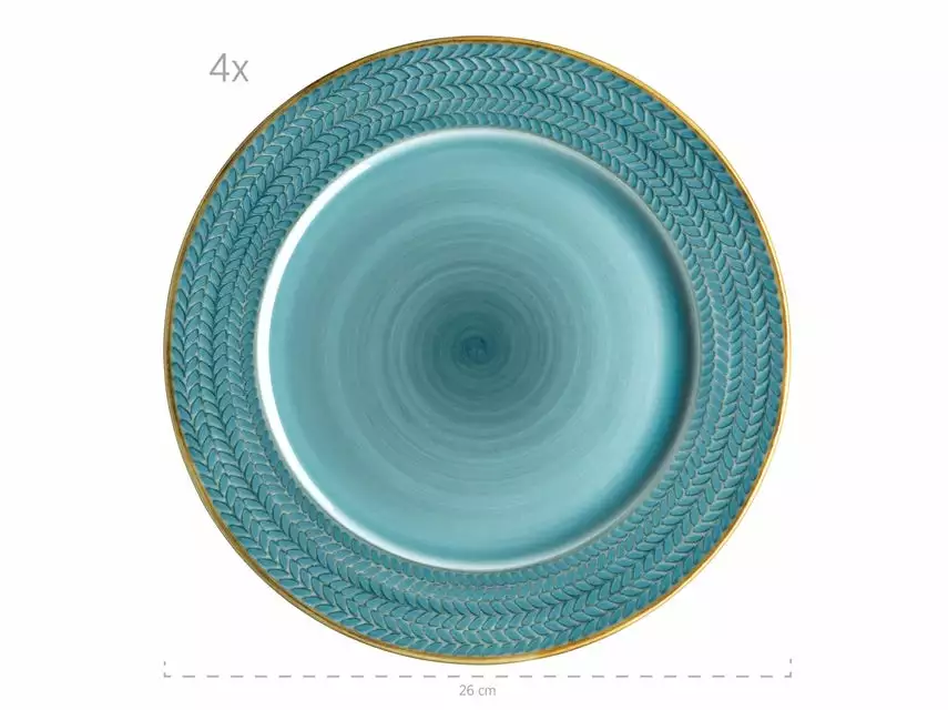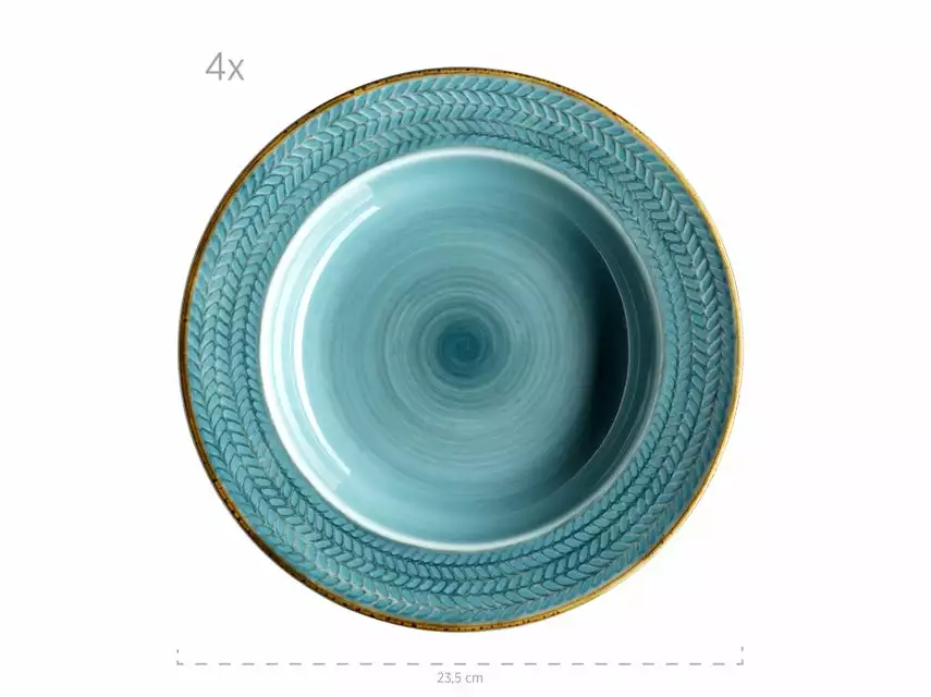 Aufregend exquisit präsentiert sich die ausdrucksstarke Premium-Kollektion Prospero der österreichischen Traditionsmarke Mäser. Eine an geschichtsträchtige Lorbeerkränze erinnernde, haptisch fühlbare Reliefstruktur umläuft ein handgepinseltes Spiraldekor, welches jedes Teil zu einem echten Unikat macht. Gefertigt aus robustem und langlebigem Durable Porzellan in dickwandiger, schwerer Qualität erfüllt diese Tafelgeschirr-Serie die besonderen Ansprüche der gehobenen Gastronomie und anspruchsvoller Privatkunden. Die einzigartige Kombination aus fließender Dynamik und selbstbewusster Eleganz wird sanft eingerahmt durch eine händisch aufgemalte, unregelmäßig schimmernde ockerfarbene Umrandung. Die sorgfältig aufeinander abgestimmten Farben dieser Kollektion ermöglichen einen täglich neu erschaffenen Esstisch, der optisch perfekt zu Ihren Speisen passt. Selbstverständlich ist die gesamte Serie Prospero mikrowellengeeignet und dauerhaft spülmaschinenfest. Dieses Set wird in einer sicheren Transportverpackung aus nachhaltigen Materialien versendet. Bitte beachten Sie: Für eine objektive Vergleichbarkeit gehen unsere Füllmengenangaben von einer randvollen Befüllung aus. Aufgrund des hohen handwerklichen Anteils sind kleine Unregelmäßigkeiten und Farbabweichungen in der Glasur möglich.