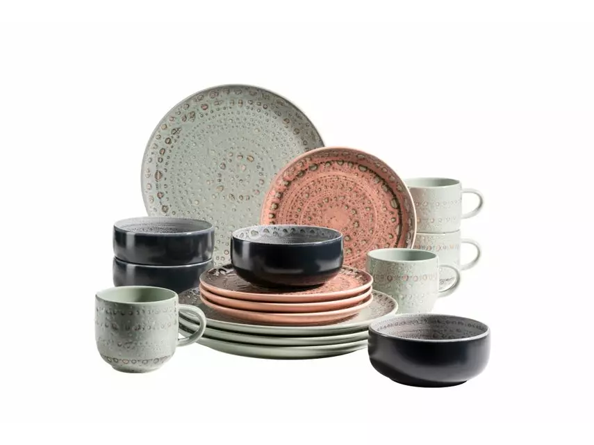 Wer ein Mainstream-Geschirr sucht, ist mit der herrlich unperfekten, handbemalten Keramikgeschirr-Serie Spicy Market der österreichischen Traditionsmarke Mäser falsch beraten: Hier ist jedes Teil ein echtes Unikat mit handwerklichem Charakter aus europäischer Produktion. Mit der verspielten, markant strukturierten Glasur, die den Blick auf das schöne dickwandige Steingut freigibt, sowie den harmonischen Farbtönen ist diese Kollektion ein absoluter Hingucker im mediterranen Vintage Design. Das Geschirrservice ist dauerhaft spülmaschinen- und mikrowellengeeignet, und dadurch äußerst pflegeleicht. Das Set wird in einer vielfach getesteten Transportverpackung aus nachhaltigen Materialien versendet.