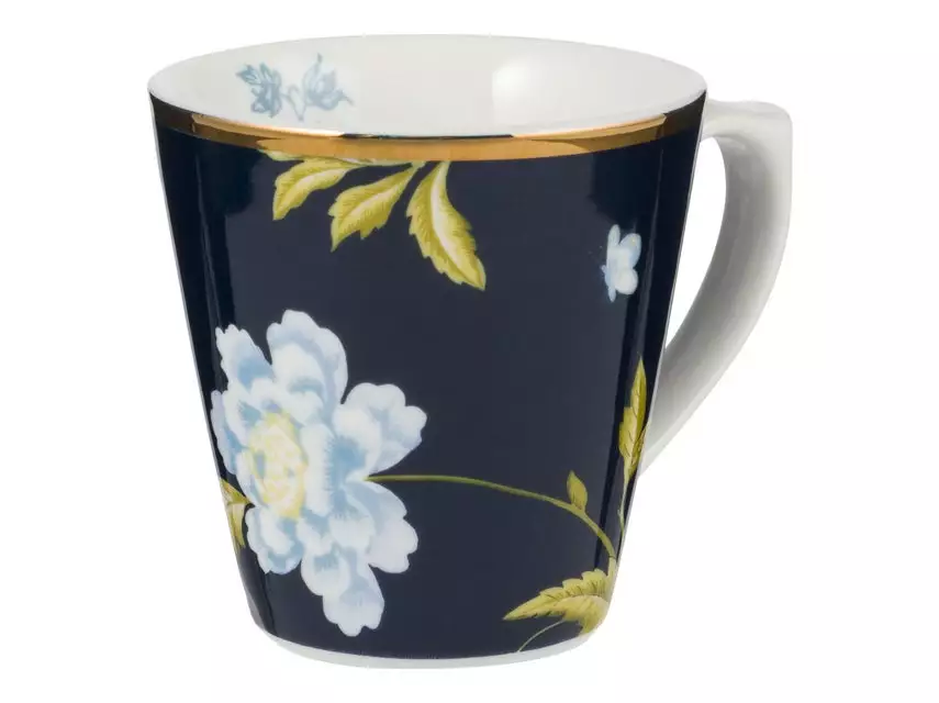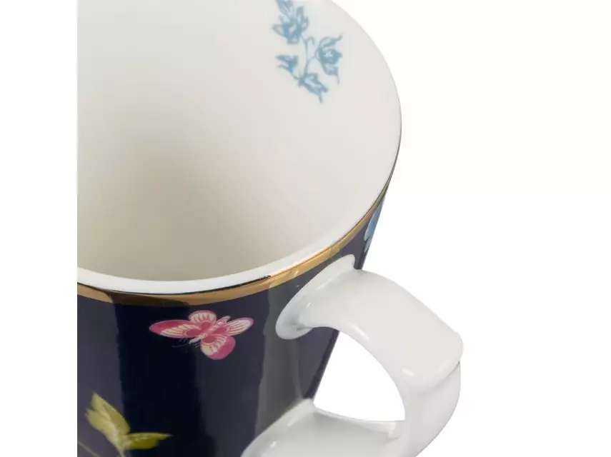Haben Sie ein wahrlich bezauberndes Frühstück mit der Geschirrserie Midnight Uni. Das tiefe Schwarz mit den pastelligen und naturalistisch gezeichneten Blumen, den Vögeln und den Schmetterlingen, welche sich geschäftig in ihrem Habitat bewegen, zaubern einen munteren Eindruck auf den Tisch. So können Sie gleich selbst den Tag voller Tatendrang beginnen. Eine Besonderheit ist auch er goldenen Rand auf Tassen und Schüsseln. Ganz bezaubernd auch die kleine blaue Blume im Inneren.