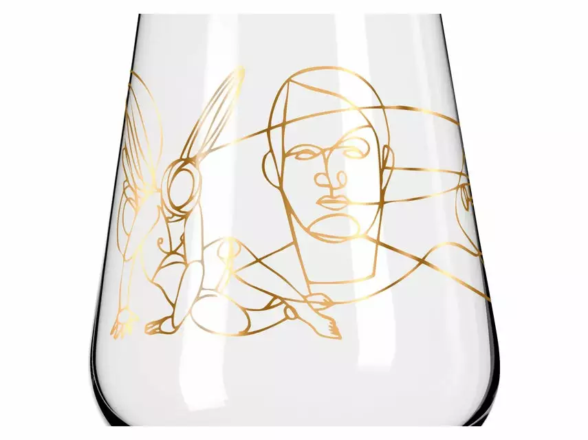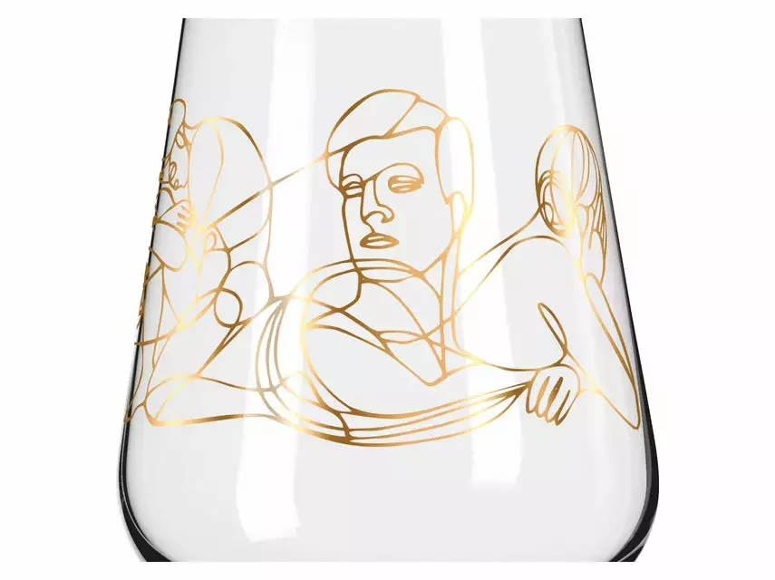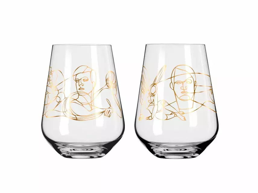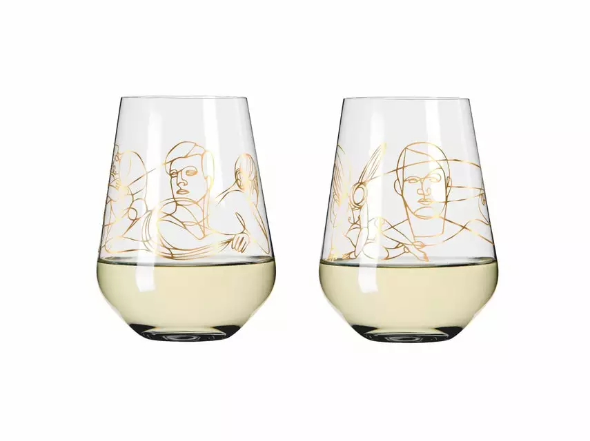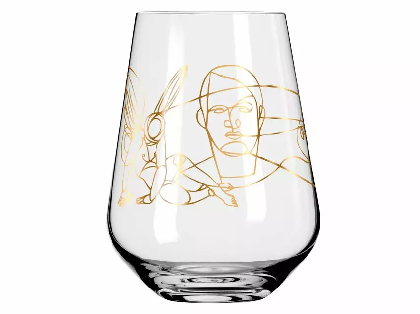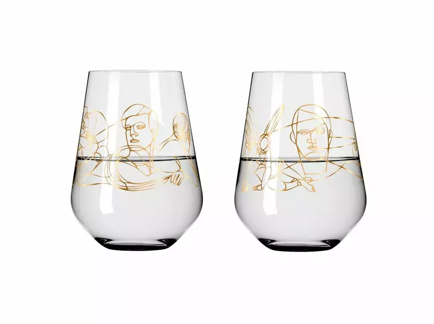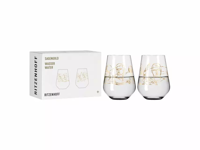 Diese Wassergläser erzählen die Sagengeschichte um Zeus und Alkmene sowei Ikarus und Dädalus, allesamt Figuren aus der Griechischen Antike. Das Design von Burkhard Neie verbindet mit feiner Strichführung die Silhouetten antiker Helden und lässt sie mit edlem Echtgold mit jeder Berührung lebendiger werden.