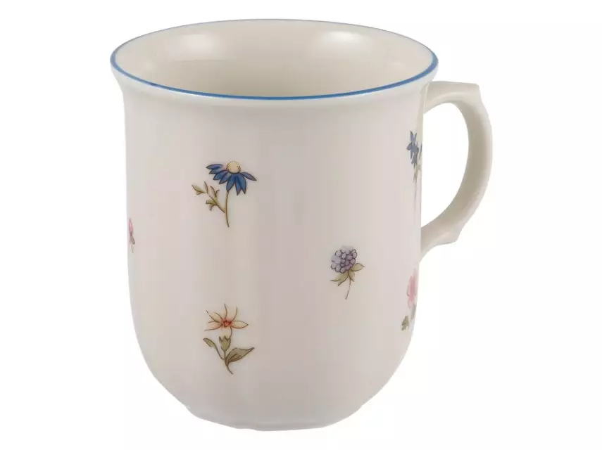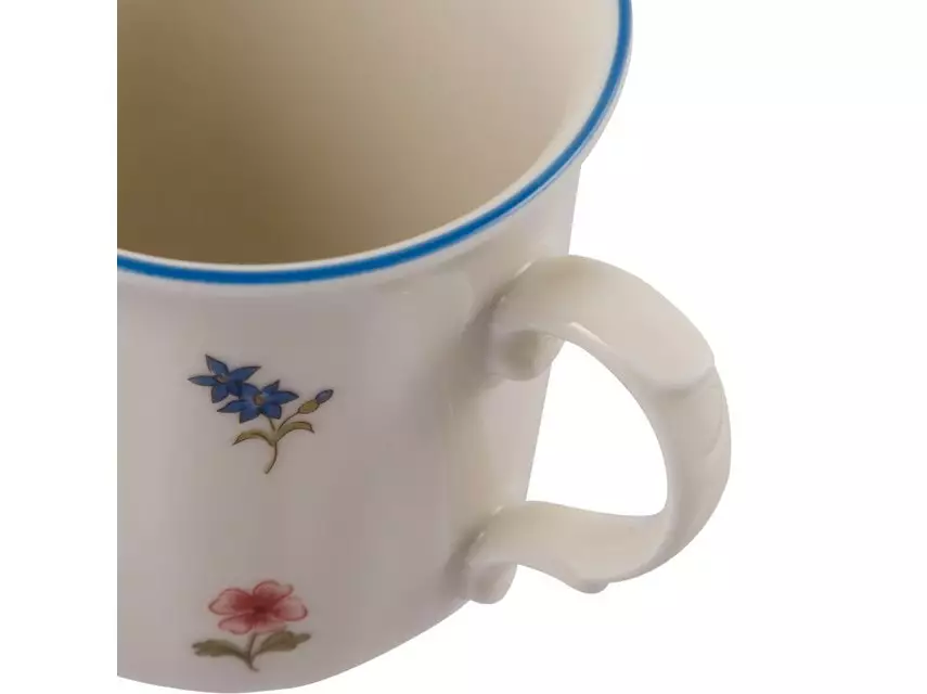 Der entzückende Becher mit Henkel Marie Luise der Marke Seltmann Weiden wird auf Ihren Frühstücks- oder Jausentisch einfach großartig aussehen. Er hat schöne blaue Elemente mit Blümchenmotiven. Der Becher besteht aus hochwertigem Porzellan und kann daher in der Spülmaschine gewaschen und in der Mikrowelle verwendet werden. Er ist in Deutschland produziert. Achtung: ohne Untertasse! Per Stück.