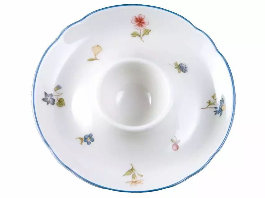 Mit dem Eierbecher mit Ablage “Marie Luise” der Marke Seltmann Weiden schmeckt das Frühstücksei gleich nochmal so gut! Mit schönen blauen Blümchenmotiven und aus hochwertigem Porzellan produziert ist der Eierbecher mit Ablage auch geeignet für Spülmaschine und Mikrowelle. Per Stück.