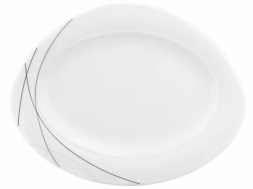 In dem modernen, schönen Geschirrset „Trio Highline“ kommen Ihre Speise und Getränke perfekt zur Geltung. Das Set ist aus Porzellan gefertigt und kann in der Spülmaschine gewaschen und in der Mikrowelle verwendet werden. Die ovale Platte hat einen Durchmesser von 31 cm. Made in Germany, Per Stück