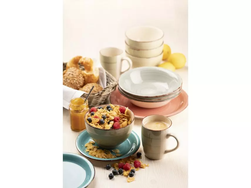 Die gesamte Serie Lumaca ist aus dickwandigem Steingut gefertigt. Mit den kreisförmig-verspielten Linienführungen kombiniert dieses Geschirr auf harmonische Weise klassische runde Formen mit einem farbenfrohen Vintage Look. Lumaca wird auch Ihren Esstisch zu etwas ganz Besonderem machen! Alle Service der Serie Lumaca sind dauerhaft spülmaschinen- und mikrowellengeeignet, und dadurch äußerst pflegeleicht. Dieses Tafelset wird in einer speziell für dieses Set entwickelten, vielfach getesteten Transportverpackung aus umweltschonenden Materialien versendet.