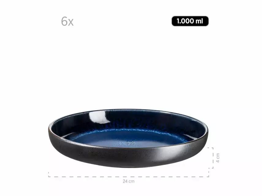 6 tiefen Tellern für Suppe, Pasta u.v.m. (Ø 24 cm, 1.000 ml Füllvolumen)