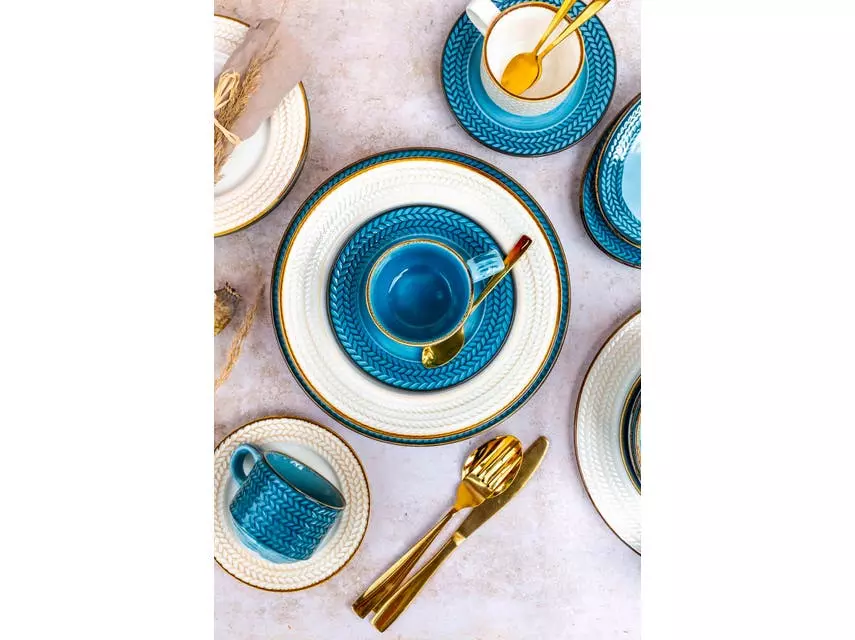 Aufregend exquisit präsentiert sich die ausdrucksstarke Premium-Kollektion Prospero der österreichischen Traditionsmarke Mäser. Eine an geschichtsträchtige Lorbeerkränze erinnernde, haptisch fühlbare Reliefstruktur umläuft ein handgepinseltes Spiraldekor, welches jedes Teil zu einem echten Unikat macht. Gefertigt aus robustem und langlebigem Durable Porzellan in dickwandiger, schwerer Qualität erfüllt diese Tafelgeschirr-Serie die besonderen Ansprüche der gehobenen Gastronomie und anspruchsvoller Privatkunden. Die einzigartige Kombination aus fließender Dynamik und selbstbewusster Eleganz wird sanft eingerahmt durch eine händisch aufgemalte, unregelmäßig schimmernde ockerfarbene Umrandung. Die sorgfältig aufeinander abgestimmten Farben dieser Kollektion ermöglichen einen täglich neu erschaffenen Esstisch, der optisch perfekt zu Ihren Speisen passt. Selbstverständlich ist die gesamte Serie Prospero mikrowellengeeignet und dauerhaft spülmaschinenfest. Dieses Set wird in einer sicheren Transportverpackung aus nachhaltigen Materialien versendet. Bitte beachten Sie: Für eine objektive Vergleichbarkeit gehen unsere Füllmengenangaben von einer randvollen Befüllung aus. Aufgrund des hohen handwerklichen Anteils sind kleine Unregelmäßigkeiten und Farbabweichungen in der Glasur möglich.