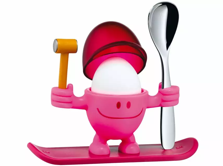 Sie mögen es verspielt? Mit dem Eierbecher Mc Egg beleben Sie Ihren Frühstückstisch. Der kleine pinke Handwerker ist mit einem Hammer ausgerüstet um die Schale des Eis aufzuschlagen. Und damit auf der Frühstücksbaustelle die Sicherheit gewährt ist, trägt das süße Männchen einen Schutzhelm. Dieser bewahrt das leckere Ei vor allzu schneller Abkühlung. Also ran an die Arbeit und tief in die Schale hinein mit dem präzisen Löffelwerkzeug aus Edelstahl.